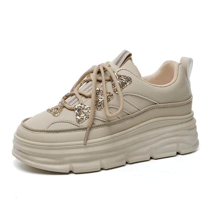 W3615 Thick-Soled Women's Loafers Height-Increasing Sports and Leisure Shoes with Sequins for Spring Summer Autumn Trends
